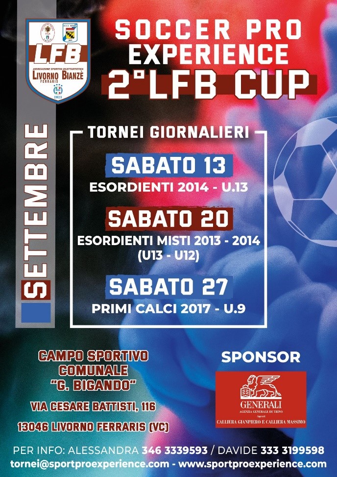 24/06/2025Manifestazioni di calcio giovanile indette dalla società LIVORNO FERRARIS BIANZE’ in programma a Livorno Ferraris (Vercelli), con la seguente programmazione :